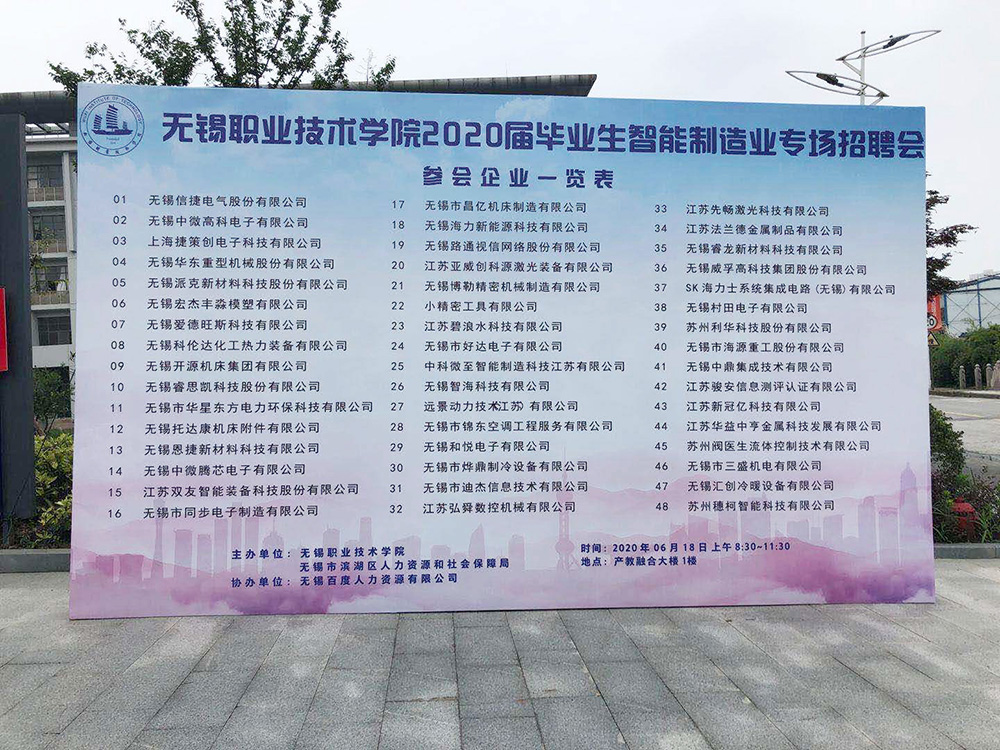 6月18日上午,無錫市昌億機床制造有限公司參加了百度求職通組織一場無錫市職業(yè)技術學院 智能制造專場線下招聘會!