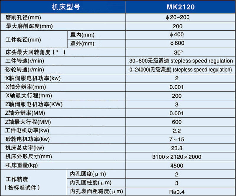 ●本機床為二軸(X軸、Z軸)數(shù)控內(nèi)圓磨床,主要用于磨削工件的內(nèi)圓孔、臺階孔、內(nèi)端面、外端面。磨削循環(huán)均自動完成(具有自動進刀、退刀、粗磨、精磨;自動修正砂輪、自動補償?shù)裙δ?。