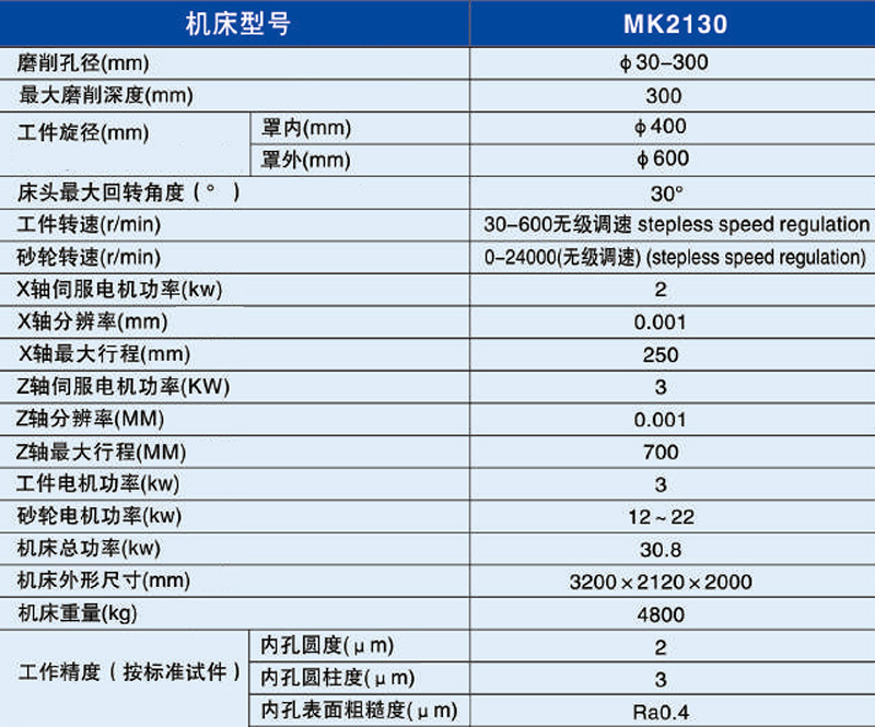 ●本機(jī)床為二軸(X軸、Z軸)數(shù)控內(nèi)圓磨床,主要用于磨削工件的內(nèi)圓孔、臺(tái)階孔、內(nèi)端面、外端面。磨削循環(huán)均自動(dòng)完成(具有自動(dòng)進(jìn)刀、退刀、粗磨、精磨;自動(dòng)修正砂輪、自動(dòng)補(bǔ)償?shù)裙δ?。